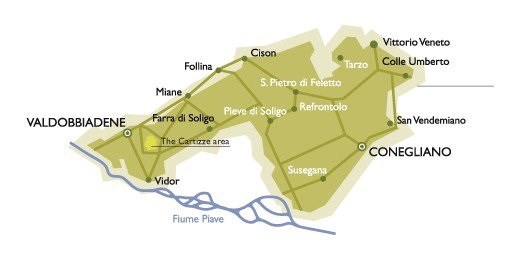 W Treviso znajduje się pełen pagórków region piętnastu miejscowości o łącznym obszarze 10,750 akrów zajmowanym przez winnice. Granice wyznaczają miejscowości Valdobbiadene i Conegliano.